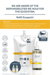 After cleaning your empty The Purest Solutions Salicylic Acid Tonic bottle, you can refill it with the ecological refill package option. Our ecological packages are 400 ml and are designed to refill the original packaging twice. We recommend storing your ecological refill package products at room temperature.